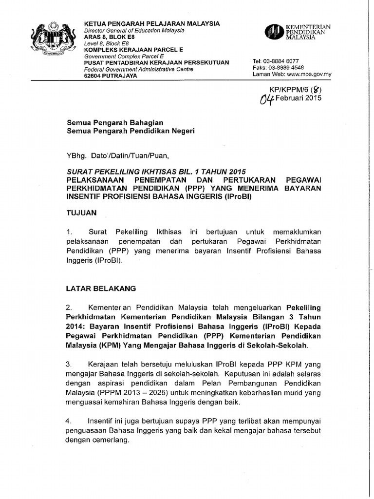 Perkara Muka Surat. Surat pekeliling ikhtisas bil. Pekeliling UPE Bil 3 Tahun 2009 - DIBATALKAN digantikan dengan Pekeliling UPE Bil 1 Tahun 2015 Muat Turun.