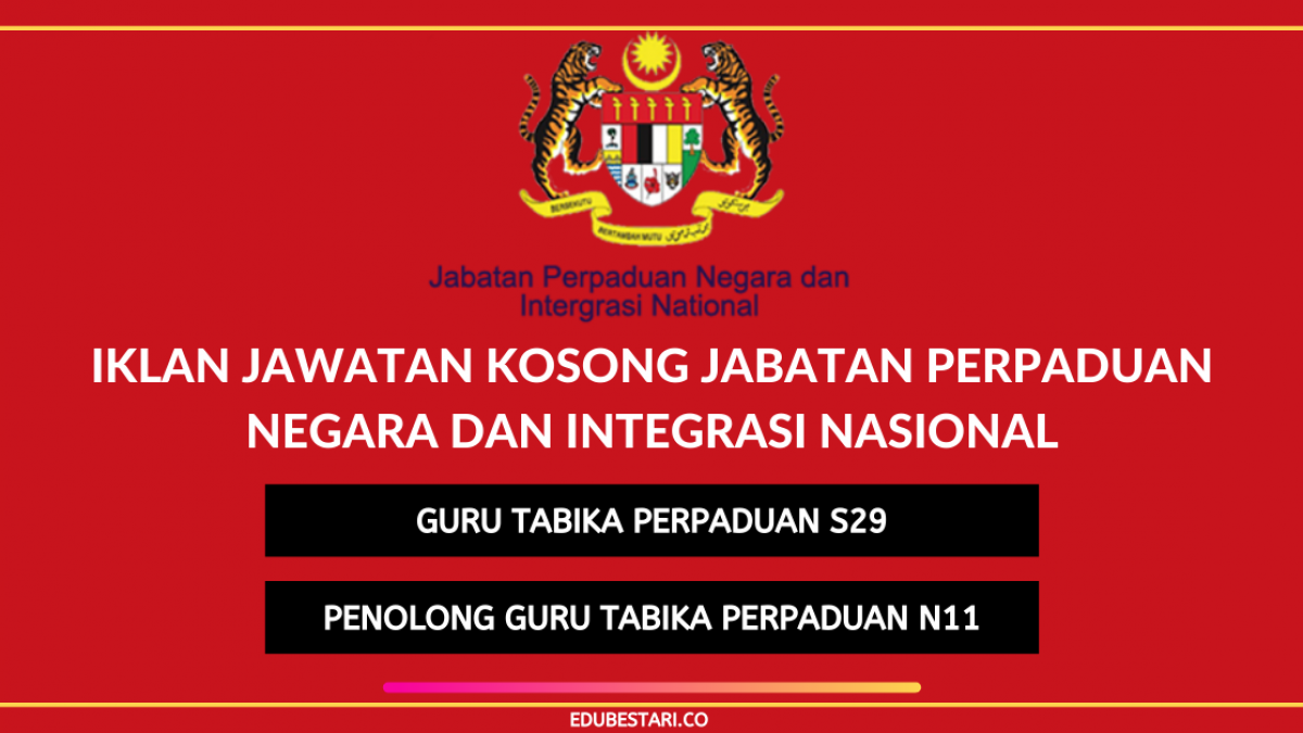 Iklan Jawatan Kosong Guru Tabika Perpaduan S29 Penolong Guru Tabika Perpaduan N11 Jpnin Edu Bestari
