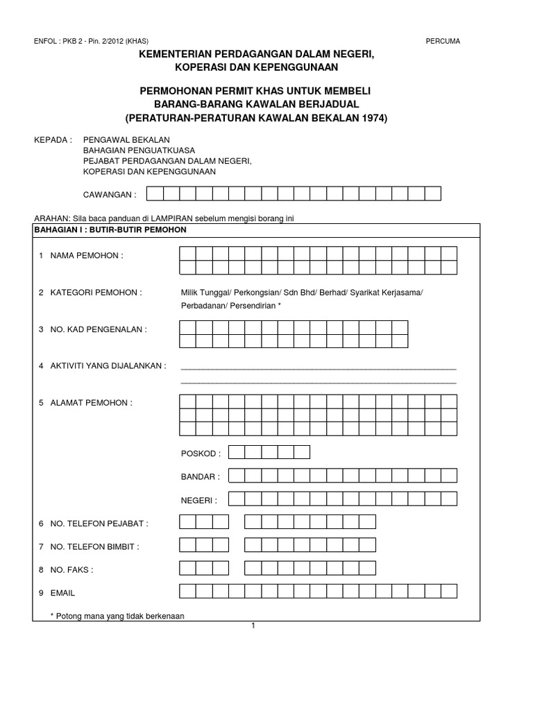 Pertanyaan lanjut berkaitan dengan permohonan lesen barang kawalan berjadual hendaklah dikemukakan kepada. Borang Permohonan Pembaharuan Permit Span. 22012 percuma kementerian perdagangan dalam negeri koperasi dan kepenggunaan permohonan pembaharuan permit untuk membeli barang-barang kawalan berjadual peraturan-peraturan kawalan bekalan 1974.