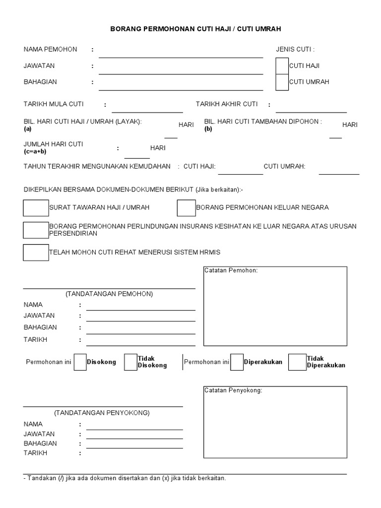 - Permohonan Cuti Haji- Permohonan LOKUM -. Borang Permohonan Cuti Separuh Gaji. 661739357 Borang Permohonan Perjalanan Docx.